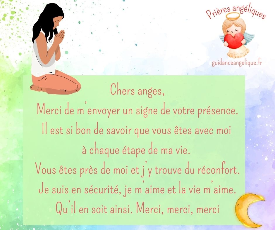 Nous pouvons utiliser la prière suivante pour demander aux anges de manifester leur présence, mais sachez qu’un signe ne vous sera envoyé que lorsque vous croirez vraiment en leur présence.