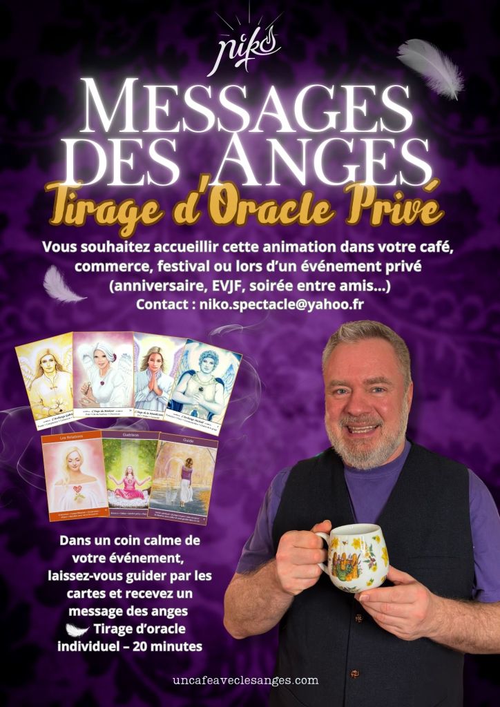 Installé dans un coin calme, spécialement aménagé pour l’occasion, je vous invite à vivre un tirage d’oracle individuel de 20 minutes pour recevoir un message des anges.